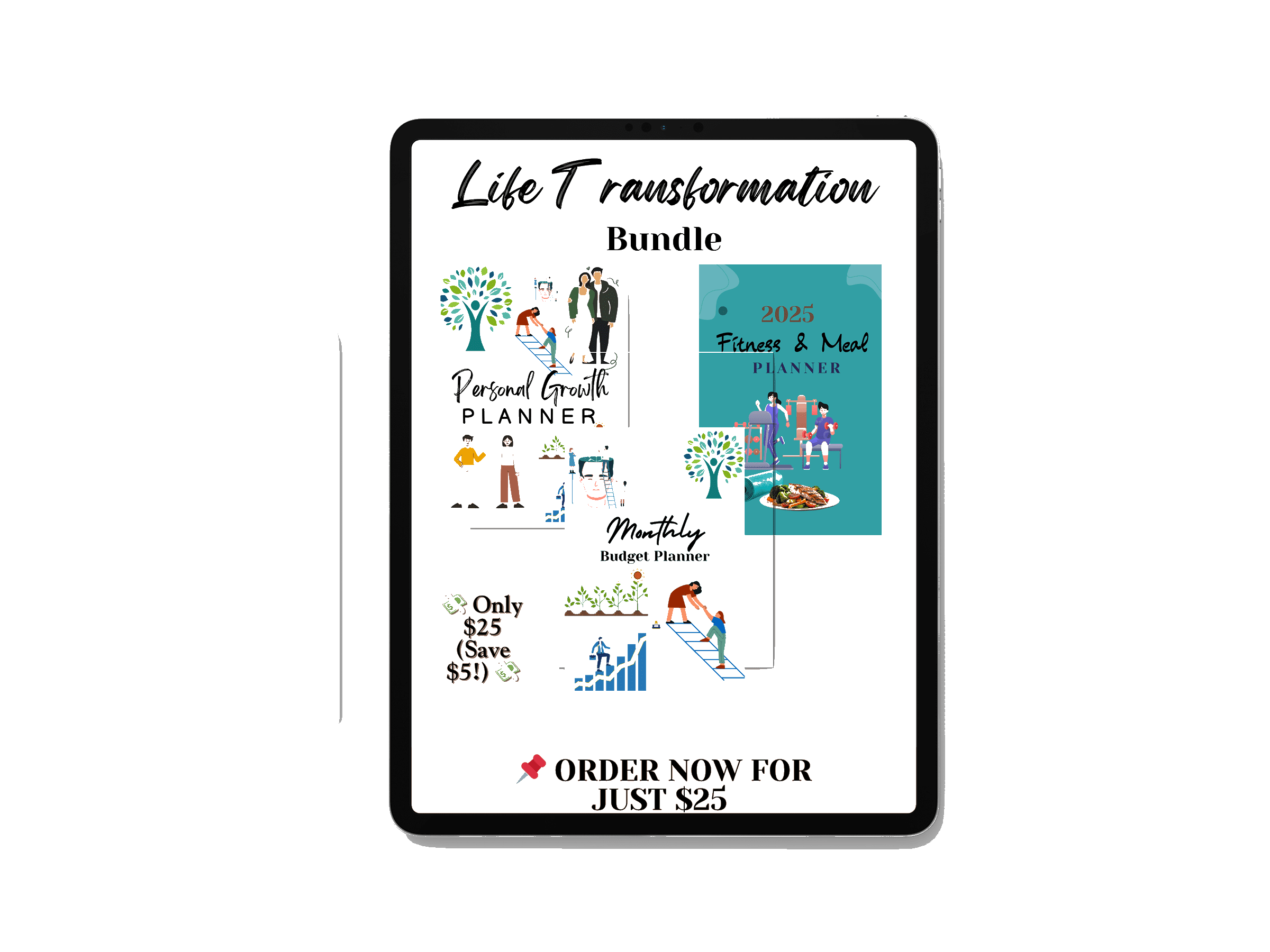 That’s why we’ve created the Life Transformation Bundle, a complete set of planners designed to help you take control of your health, finances, and personal growth all at once.